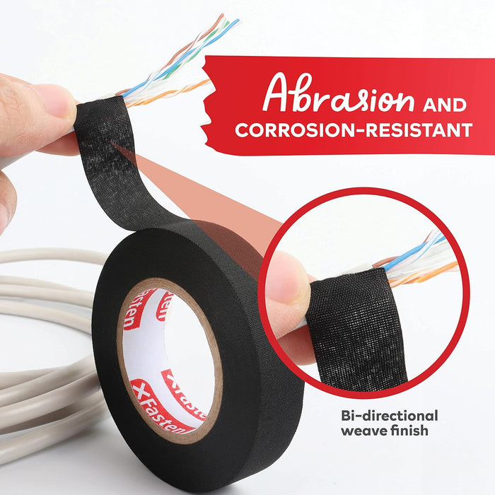 The XFasten Wire Harness Tape was designed with the goal of empowering average car owners to achieve professional-grade results on maintaining and repairing their automotive and engine wiring and cables. It has a low skill and mastery requirement, which everyone can use easily from beginners to professionals.Why Choose the XFasten Engine Wire Loom Wrap Tape?BUILT TO LAST AGAINST EXTREME CONDITIONS. With -40 F to 257 F of operating temperature, the Cloth Electrical Tape can last well on your car.RELIABLE PERFORMANCE FOR LONG-TERM USE. Unlike other wire harness tapes that oozes out a messy goo after being exposed to heat, the Engine Wire Loom Tape can last for years without residue-leak thanks to it being high-heat resistant, corrosion-resistant, abrasion-resistant, and puncture-resistant. EASY TO USE FOR FAST-PACED MAINTENANCE AND REPAIR. With the Felt Car Cable Tape’s pressure-sensitive adhesive, it can be used to bundle quickly and efficiently, especially on hard-to-reach cables.EXTREMELY STRONG BUT EASY TO TEAR. Some wire loom harness tapes have a strong adhesive but are very hard to cut by hands. We designed the Automotive Wire Loom Harness Tape to have a strong adhesive and puncture-resistant cloth backing while. On top of that, thanks to it having a bidirectional weaving, it can be torn with bare hands without losing any tensile strength.KEEP YOUR CABLES IN PRISTINE CONDITION. The Wire Harness Tape was precisely engineered to have a similar thickness, tensile strength, and look and feel with OEM brands so that you can always feel that your cables and wires are always in pristine condition.Why Choose the XFasten brand?More than delivering premium products, our goal is to satisfy our customers. If you have any problems with our tape, even after several months after your purchase, just contact us.